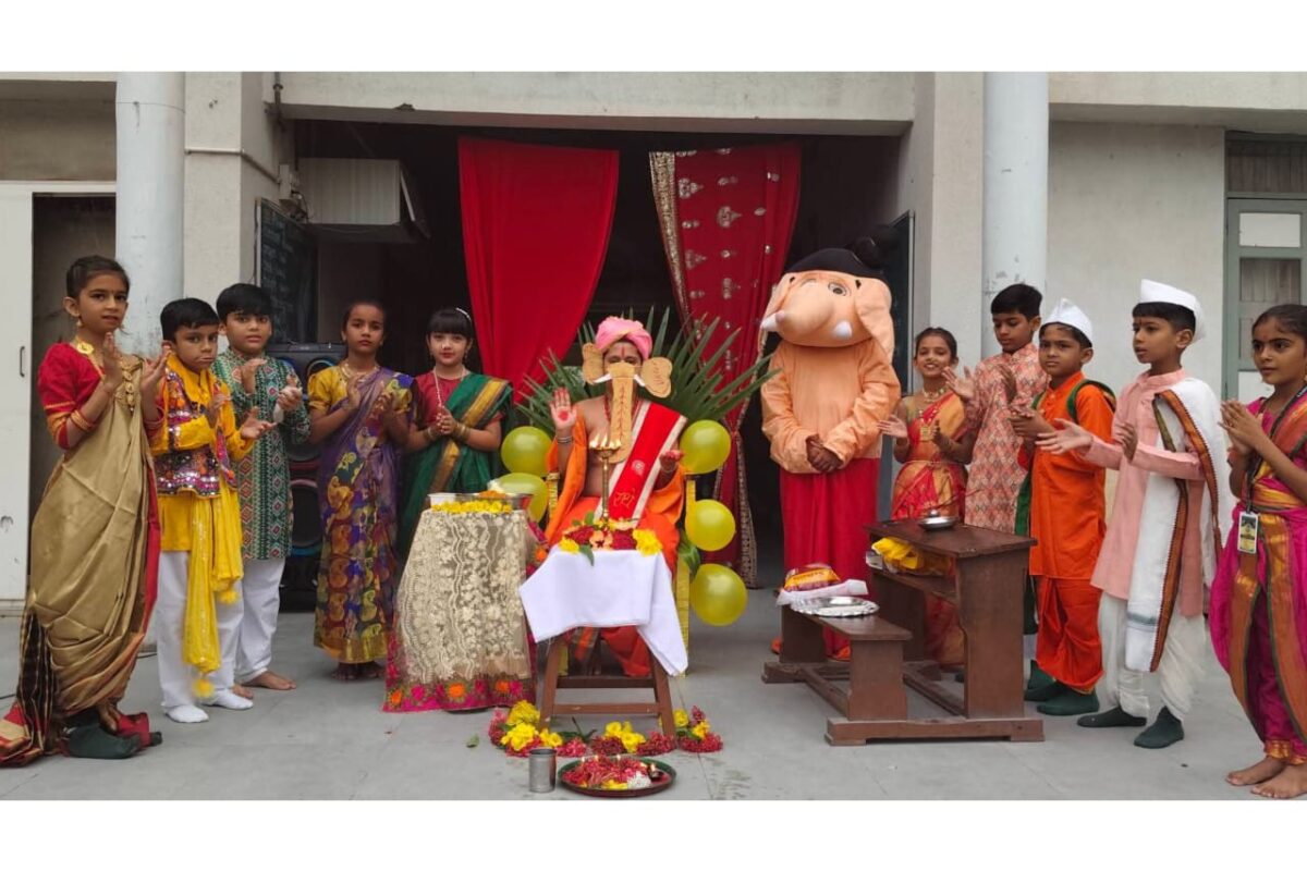 The school celebrated Ganesh Chaturthi on 26 August 2025 with devotion and enthusiasm, involving students of Classes 1 to 8. The celebration began with a prayer and the installation of a beautifully crafted eco-friendly idol of Lord Ganesha. Students presented songs, dances, and short speeches highlighting the significance of Lord Ganesha as the remover of obstacles and the harbinger of wisdom and prosperity. Teachers explained the importance of celebrating the festival in an environmentally friendly way. The event filled the campus with festive energy and spiritual joy, inspiring students to uphold cultural traditions while caring for nature.