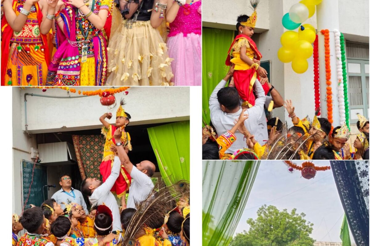 The school joyfully celebrated Janmashtami on 14 August 2025 with the active participation of students from Classes 1 and 2. The celebration began with a short narration of Lord Krishna’s birth and childhood stories, highlighting the values of love, kindness, and truth. Children came dressed as little Krishnas and Radhas, adding color and charm to the occasion. Devotional songs and a simple dahi-handi activity filled the atmosphere with excitement and devotion. Teachers explained the significance of the festival and encouraged students to follow Krishna’s teachings. The event created a vibrant and spiritual environment, leaving lasting memories for the young learners.